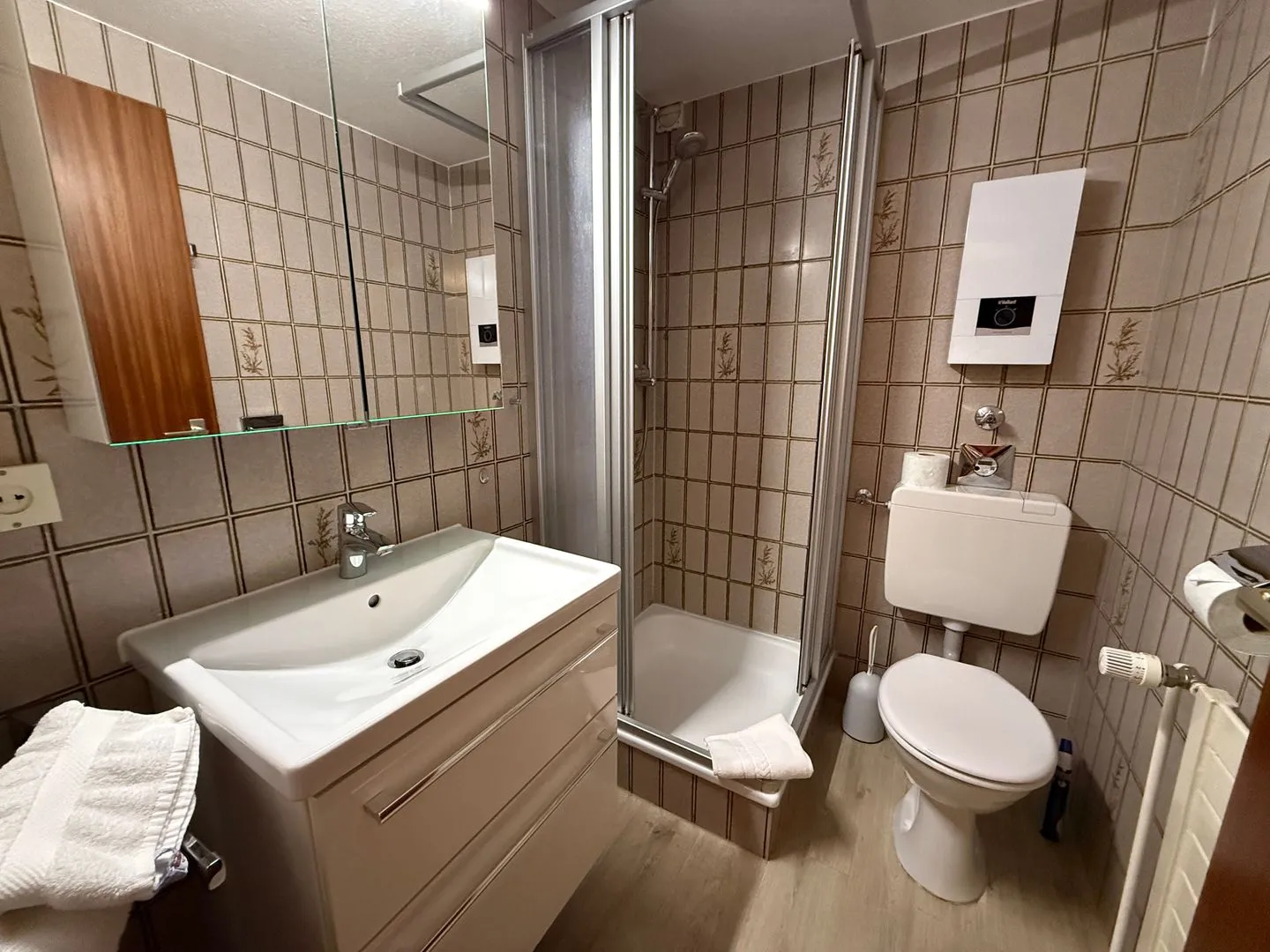 Das Badezimmer mit Dusche sorgt für zusätzlichen Komfort.